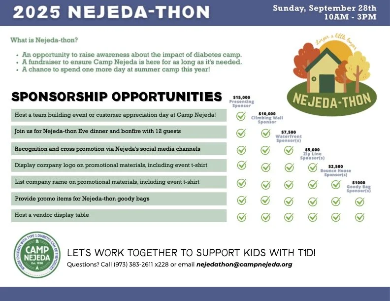 Our goal is to raise $150,000 toward Camp Nejeda's annual need of $1.1 million in charitable support. Your support is critical—it helps us continue to provide life-changing experiences for our campers. A great way to help is by creating a fundraising page! They're quick and easy to set up, and a perfect way to share your story and support Camp Nejeda, even if you can't be with us on the day of the event.